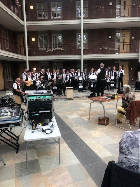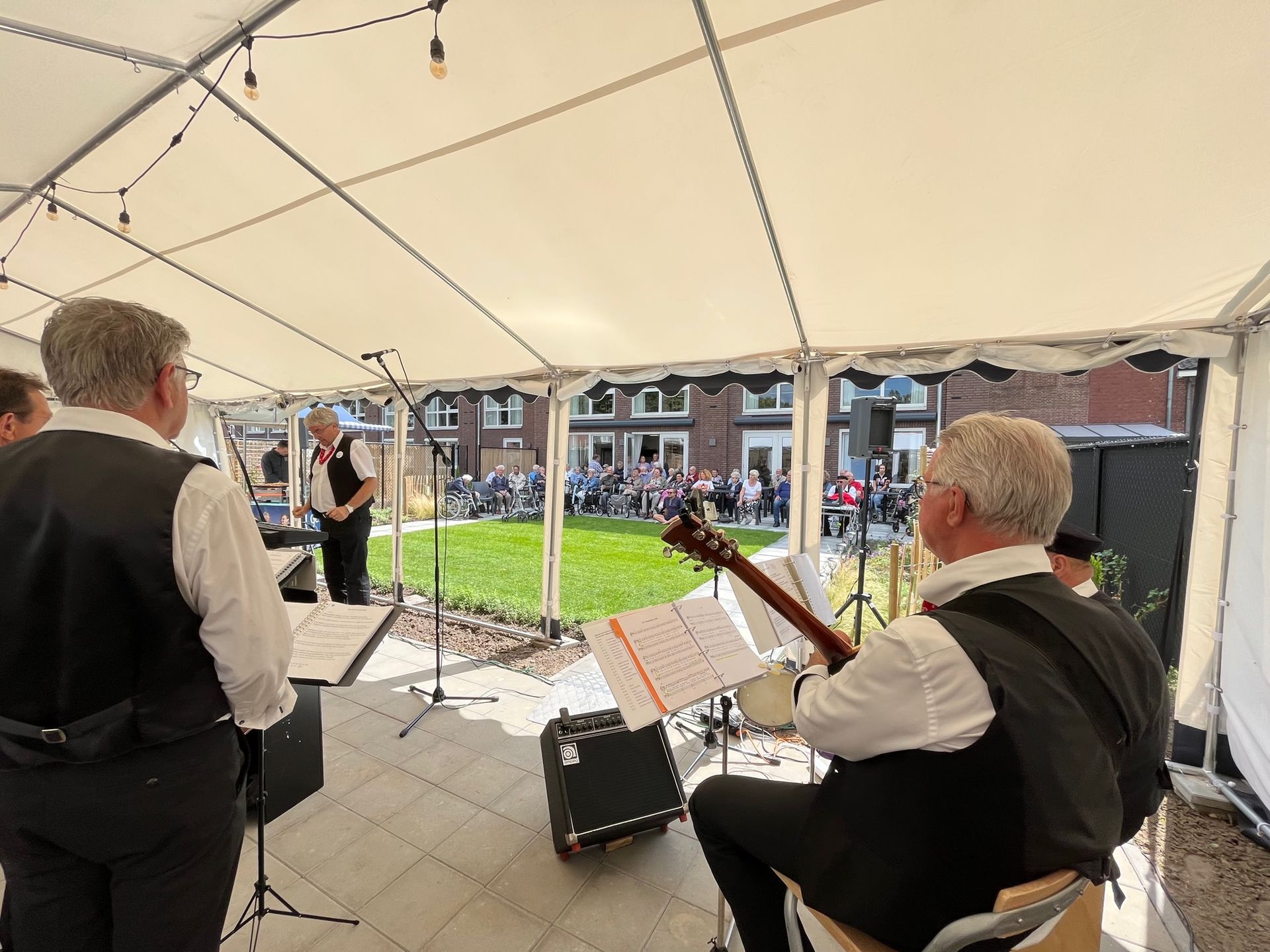 ▼ Optreden in Taxandria, verzorgingshuis, Valkenswaard op 12 juli 2024, foto's Pierre van der Lans