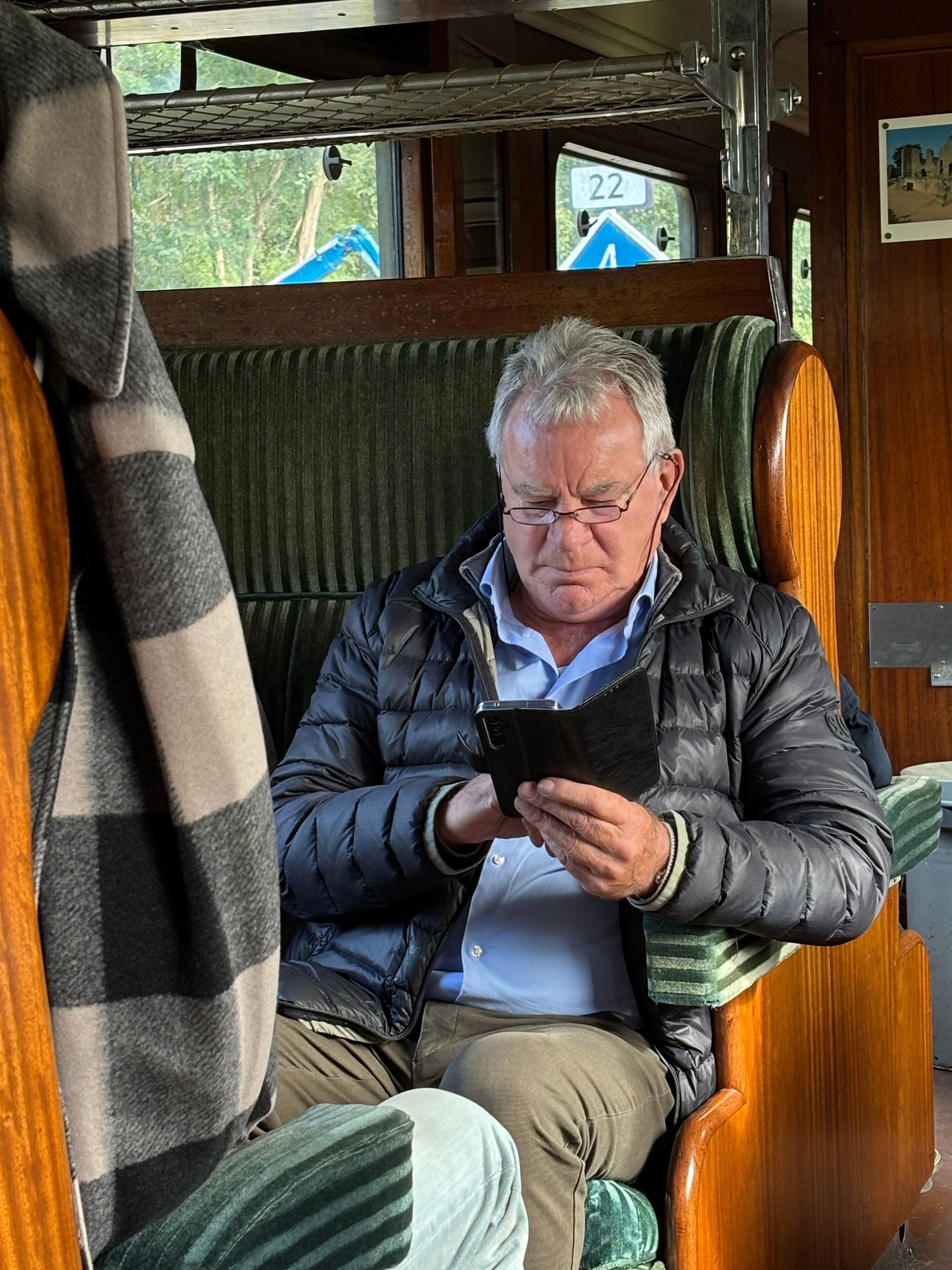 ▼ Stoomtrein, wandelen/lunchen, railbus en dineren in het Heuvelland op 6 oktober 2024 - foto's Yvonne Nijsten, Gerard Linssen, Paul de Jong